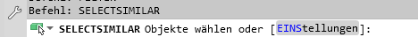 Nutzen Sie den Befehl selectsemilar Ohne vorherige Auswahl zu vergleichender Objekte, so kann man sich die Einstellungen des Befehls im Dialogfenster Ähnliche Einstellungen auswählen anzeigen lassen und bei Bedarf ändern (dazu bei selectsemilar den Unterbefehl [EINStellungen] wählen).