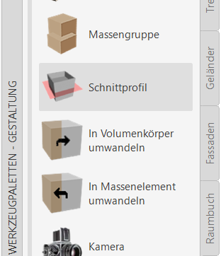 Bei den Werkzeugpaletten unter Modellieren finden Sie den Befehl „Schnittprofil“. Starten Sie den Befehl.